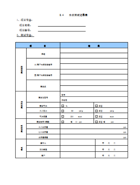水分测试,,,,,,,气体速率应低于设计流速的10%,,,,,,,且小于3m/s,测试气源的水分应小于1ppbv,,,,,,,水分增量应小于20ppbv,,,,,,,测试竣事后,,,,,,,应至少坚持20min稳固在划定值以下为及格。。。。。